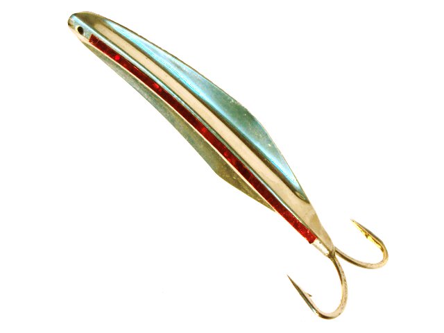 Blaszka na podwójnym haku, służąca do wędkowania w pionie.