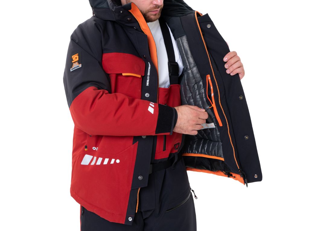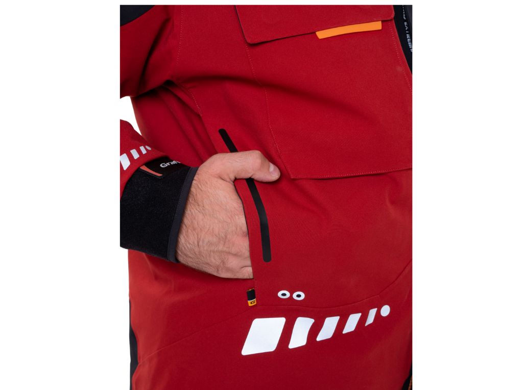 Trójwarstwowa membrana BRATEX® (25 000 mm H₂O / 20 000 g/m² / 24 h) skutecznie chroni przed deszczem, śniegiem i wiatrem, a jednocześnie odprowadza wilgoć. Wierzchnia tkanina z apreturą DRY CARE® sprawia, że woda spływa z powierzchni, a brud trudniej się osadza. Podszewka w technologii HEAT COAT (koc termiczny) dodatkowo wspiera utrzymanie ciepła.