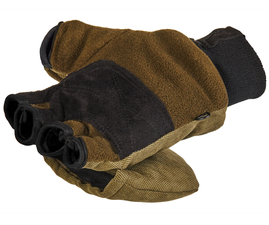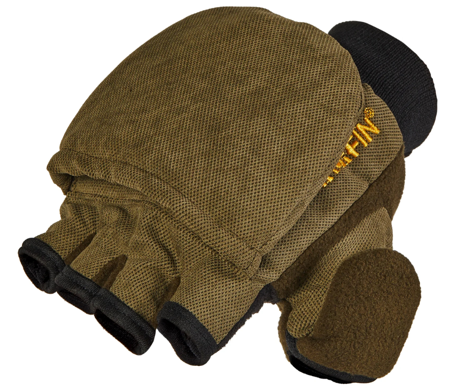 Wiatroszczelne, odpinane rękawice wykonane z wysokiej jakości tkaniny POLYESTER, wyposażone w magnetyczny system zapinania. Doskonale nadają się do zimowego łowienia i polowania. Odpinana, ocieplana klapa zakrywa palce. Specjalna konstrukcja zapewnia elastyczność palców i umożliwia precyzyjny ruch.