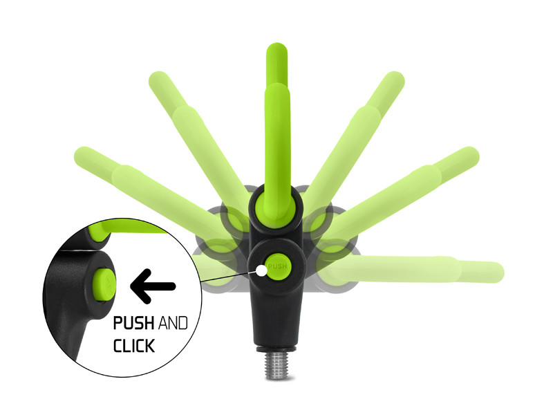 Regulacja kąta: Mechanizm na spodzie widełek pozwala ustawić pożądany kąt nachylenia. Dostosujesz podpórkę do własnych preferencji i warunków na łowisku.