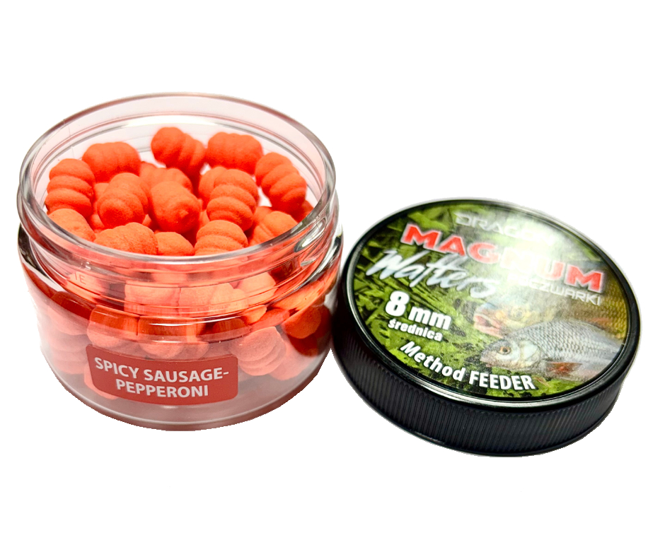 Coraz bardziej popularna przynęta feederowa – tzw. poczwarki. Występuje w wersji pływającej (Pop-Up), tonącej (sinking) i z neutralną pływalnością (wafters). Jest łatwa do zassania. Na jedną przynętę można złowić nawet kilka ryb. Poczwarki są na tyle miękkie, że nie wymagają nawiercania igłą. Długo utrzymują aromat powoli uwalniając go do wody. 17 aromatów w różnych kolorach. Słoiczek 60 ml – około 30 gramów.