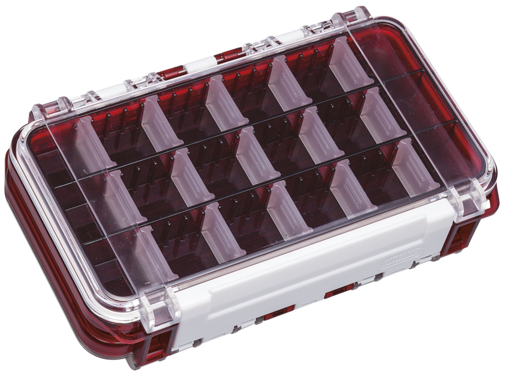 Meiho Bousui WG-1 Dwustronne pudełko na sprzęt wędkarski Najlepsze rozwiązanie do przechowywania sprzętu wędkarskiego. Ta dwustronne plastikowe pudełko pozwala użytkownikom przechowywać i organizować sprzęt wędkarski. Jedna strona ma 15 małych przegródek na wiele małych przegródek, a druga strona ma wstępnie wyciętą piankową wkładkę na haczyki i przynęty. Każda gumowana, wodoodporna pokrywa jest bezpiecznie zamknięta mocnym plastikowym zatrzaskiem. Jest to niezbędny element każdej torby na sprzęt wędkarski.